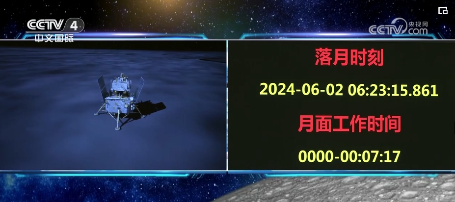 此前,6月2日6時23分,嫦娥六號著陸器和上升器組合體在鵲橋二號中繼星支持下成功著陸在月球背面南極-艾特肯盆地預選著陸區。