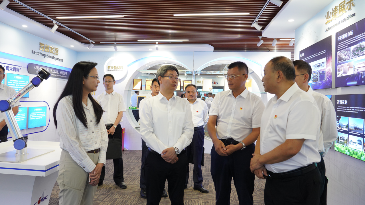 陳錫明一行走進航天建設所屬航天設計企業(yè)展廳,詳細了解企業(yè)歷史沿革、關(guān)鍵核心技術(shù)及資質(zhì)、市場拓展、產(chǎn)業(yè)發(fā)展、黨建工作等基本情況。