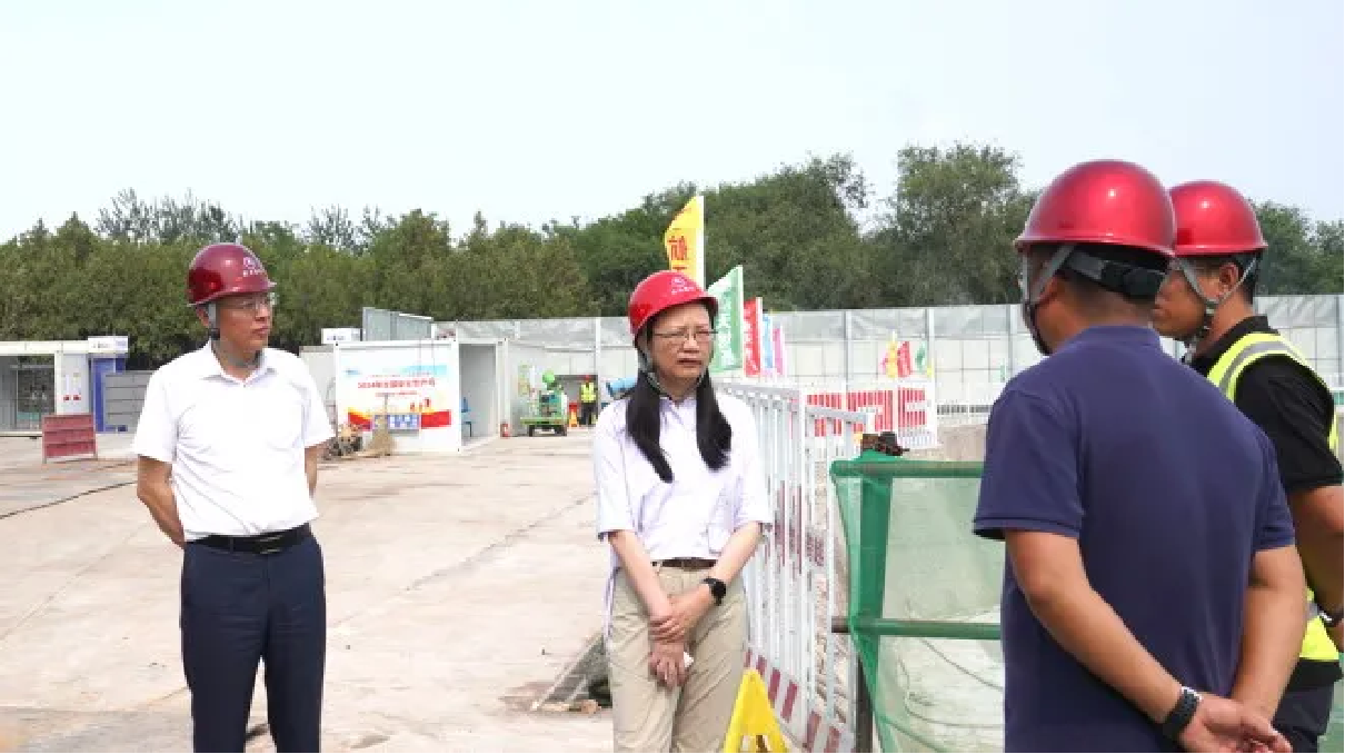 6月20日下午,航天建設總經理、副董事長竇曉玉慰問了航天設計集成研發設計中心建設項目。她檢查了施工現場,聽取項目進展情況,肯定了項目管理工作。她要求項目部高度重視施工作業安全,密切關注汛情變化,保質保量完成生產任務。