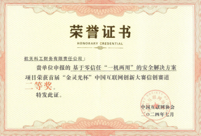 7月11日?qǐng)A滿落幕的首屆“金靈光杯”中國(guó)互聯(lián)網(wǎng)創(chuàng)新大賽中,中國(guó)航天科工財(cái)務(wù)公司榮獲“信創(chuàng)賽道”二等獎(jiǎng),展現(xiàn)了公司持續(xù)深扎金融科技領(lǐng)域,大膽突破、勇于創(chuàng)新的進(jìn)取精神。