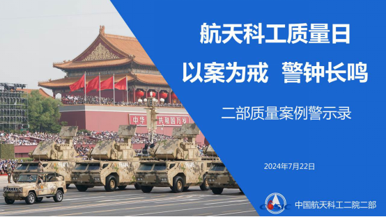 為全面貫徹習(xí)近平強(qiáng)軍思想,圍繞“四個確保”新時期質(zhì)量工作方針,落實(shí)集團(tuán)公司關(guān)于開展2024年航天科工質(zhì)量日主題活動的要求,航天二院二部日前積極組織開展了主題為“以案為鑒,警鐘長鳴,全面強(qiáng)固產(chǎn)品質(zhì)量”的航天科工質(zhì)量日系列活動,推動全員進(jìn)一步認(rèn)清嚴(yán)峻質(zhì)量形勢,始終堅(jiān)持質(zhì)量至上,貫徹“質(zhì)量就是生命、質(zhì)量就是勝算”的理念,持續(xù)強(qiáng)化總體部質(zhì)量責(zé)任擔(dān)當(dāng)。
