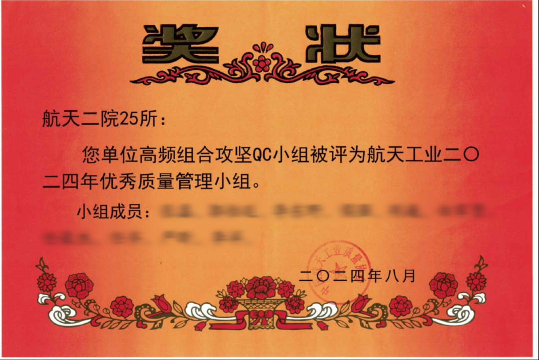 近日,航天二院25所四室逐夢QC小組、裝調(diào)部高頻組合攻堅QC小組獲評“航天工業(yè)優(yōu)秀質(zhì)量管理小組”榮譽稱號。