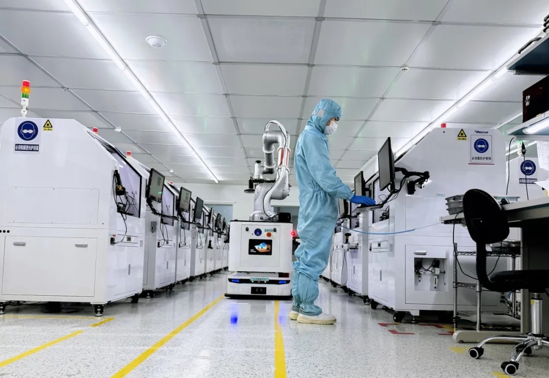 銳科激光智慧光子生產(chǎn)車間,一臺(tái)搭載精密機(jī)械臂的自主移動(dòng)機(jī)器人正沿著預(yù)定路線,緩緩駛向目標(biāo)機(jī)臺(tái)。它精準(zhǔn)停靠后,機(jī)械臂隨即探入設(shè)備內(nèi)部,執(zhí)行夾取、移載、掃碼、上料等系列操作,一氣呵成。操作員李工站在調(diào)度屏前,專注地監(jiān)控著實(shí)時(shí)數(shù)據(jù)。