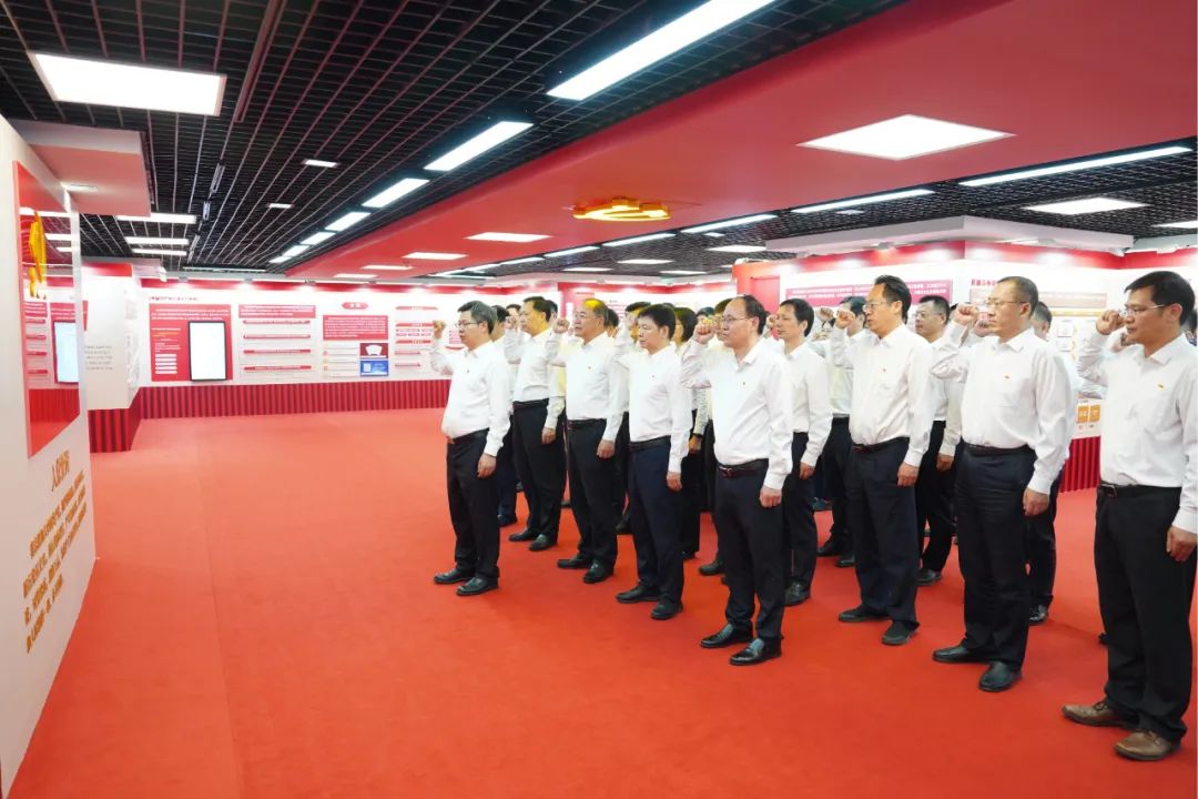 參觀后,陳錫明帶領(lǐng)大家面向黨旗重溫了入黨誓詞。(文攝/韓超)