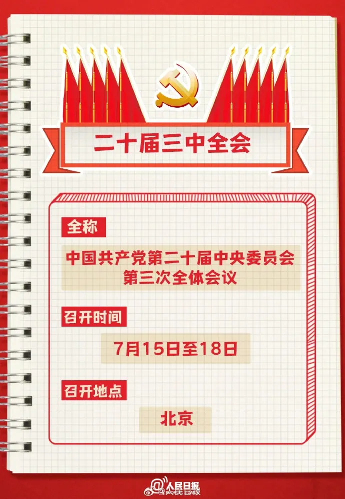 中國共產黨第二十屆中央委員會第三次全體會議于7月15日至18日在北京召開。二十屆三中全會主要議程有哪些?進一步全面深化改革的總目標是什么?二十大以來歷次中央全會研究了哪些內容?二十屆三中全會是個什么會?一起學習!
