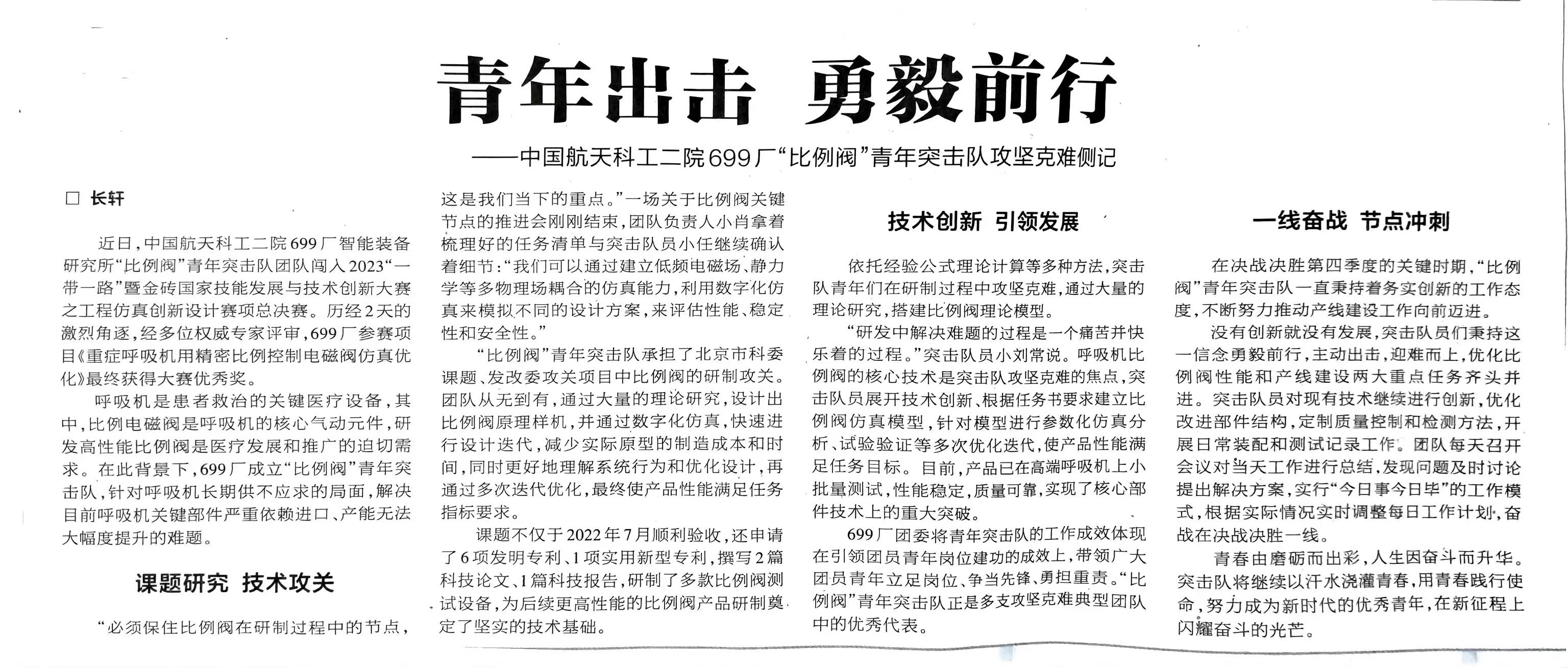 在全年科研生產(chǎn)工作中,青年突擊隊成績斐然。在全院一盤棋精神感召下,迅雷青年突擊隊大力協(xié)同,勠力力同心、努力拼搏,加班加點,僅用4天完成兄弟單位某設(shè)備生產(chǎn)調(diào)試任務(wù),為兄弟單位在空間特殊環(huán)境中試驗提供了有力保障;二齊青年突擊隊在承接任務(wù)過程中積極創(chuàng)新,自制工裝,研究新方法,新技術(shù),使得技術(shù)方法有了新的突破,拓寬了699廠承接任務(wù)廣度;加油桿青年突擊隊為了全力保障總體在試驗場調(diào)試進(jìn)度,將調(diào)試任務(wù)模塊化分配,并責(zé)任到人、節(jié)點到天,成功配合總體完成聯(lián)調(diào);“極限沖鋒”青年突擊隊杜絕“差不多”,追求“零缺陷”,認(rèn)真梳理產(chǎn)品狀態(tài),做好工藝審查,提早發(fā)現(xiàn)問題,留出解決問題的時間,提前消除質(zhì)量隱患,為一流質(zhì)量保駕護(hù)航;“創(chuàng)新創(chuàng)效”青年突擊隊在保障生產(chǎn)任務(wù)同時,年度突破性承接15項課題研究工作,編制和修訂標(biāo)準(zhǔn)7項,特殊過程確認(rèn)9項;翱翔青年突擊隊致力于科研創(chuàng)新,依托型號任務(wù)積極開展工藝攻關(guān)與工藝細(xì)化量化工作,通過創(chuàng)新手段實現(xiàn)精細(xì)化管理,獲得2023年中國創(chuàng)新方法大賽北京賽區(qū)二等獎;“比例閥”青年突擊隊獲2023一帶一路暨金磚國家技能發(fā)展與技術(shù)創(chuàng)新大賽優(yōu)秀獎。青年突擊隊始終用青年合力為企業(yè)科研生產(chǎn)任務(wù)的高質(zhì)量完成作出了堅強(qiáng)的保障。