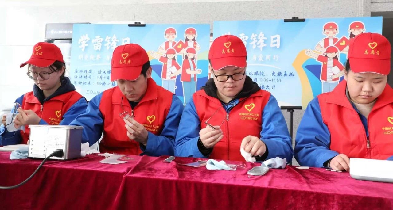 ▲303所團委舉辦了“明亮視界 與愛同行”志愿服務活動,為所內職工提供更換鼻托和超聲波清洗眼鏡服務。