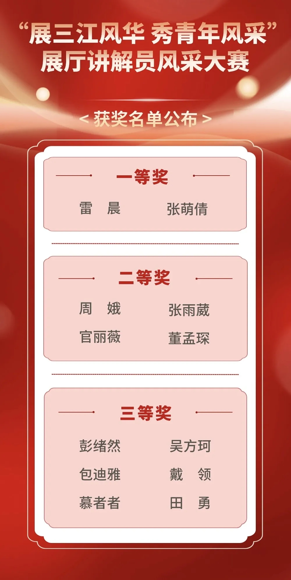 頒獎儀式后,九院本部黨委書記、黨建工作部部長向獲獎選手表示熱烈祝賀,對大家的專業素養和精彩表現給予高度肯定。他勉勵青年積極參與到講解員隊伍建設中,當好三江品牌代言人、三江精神傳播者,用心用情講好三江故事、航天故事。