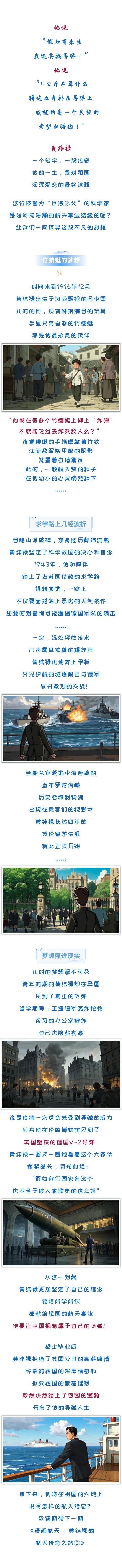 一代人有一代人的奮斗,一個時代有一個時代的使命。不朽的航天精神早已融入航天人的血脈中,穿越時空、傳承至今......每一代航天人都以自己的方式,書寫關(guān)于探索、勇氣、夢想與堅持的故事。航天科工四院官微推出“漫畫航天”系列推文,通過漫畫的形式,講述他們關(guān)于航天的故事。本期,讓我們走進(jìn)《漫畫航天 | 黃緯祿的航天傳奇之旅①》。